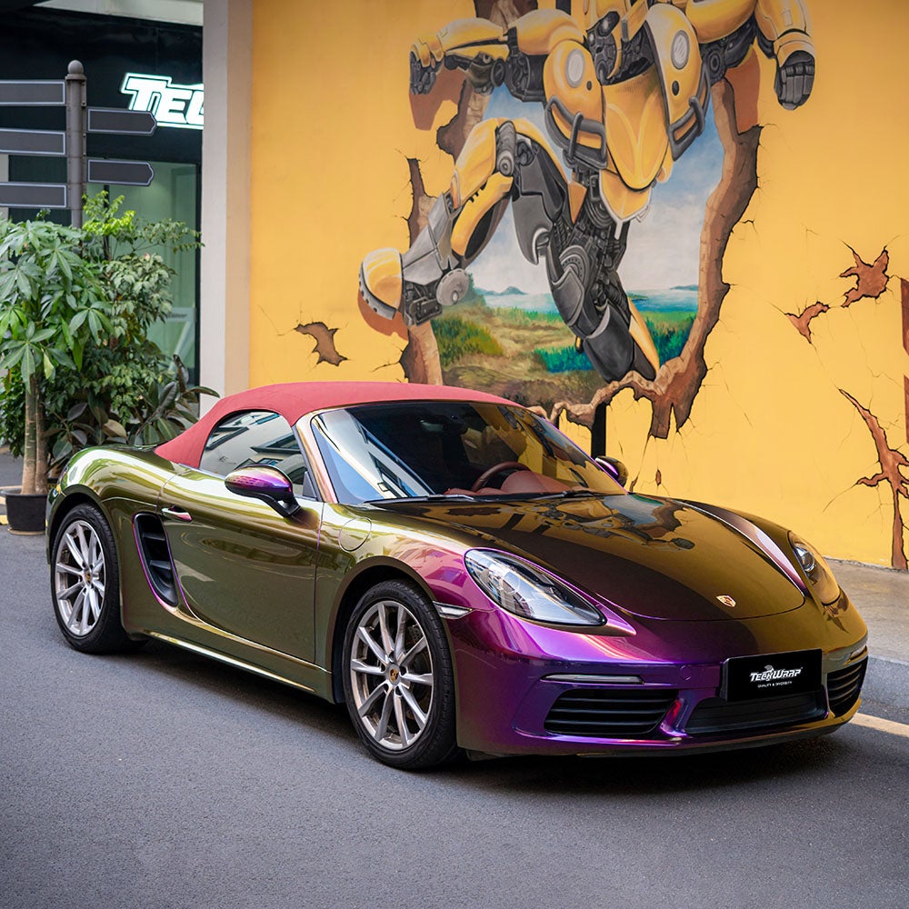Teckwrapin väriä vaihtavat Color Shift autoteipit ovat miellyttäviä asennusominaisuuksiltaan ja ilmakanavoitu liimapinta helpottaa asennustyötä. Mukautuva PVC materiaali on Teckwrapin 190 sarjaa ja se soveltuu täydellisesti yliteippaamiseen kaarevillekin pinnoille. Väriä vaihtava Crazy Grape shiftaa violetista aniliiniin.